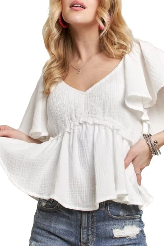 Adora Chic Ruffled Button-Down Babydoll Blouse