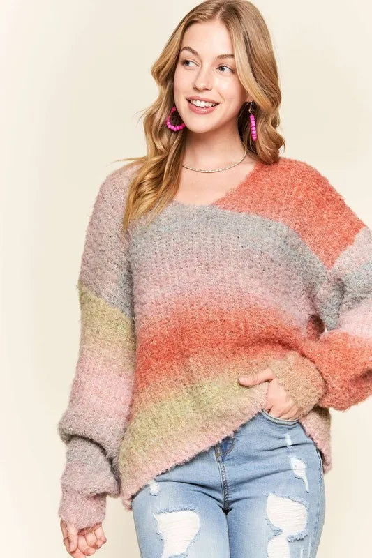 ADORA Chic Ombre Sweater Top in Vibrant Colors
