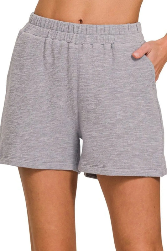 Zenana Soft Melange Hacci Elastic Waisted Shorts