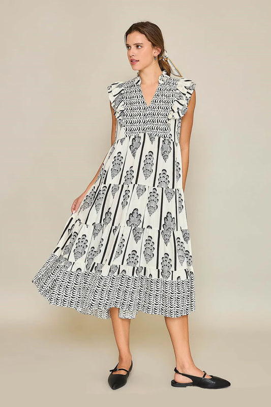 Chic Ruffle Sleeve Smocked Midi Dress with Tiered Design