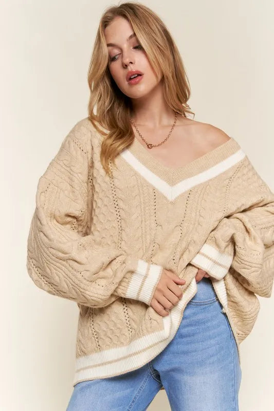 ADORA Off-Shoulder Cable Knit Sweater - Cozy & Trendy Design