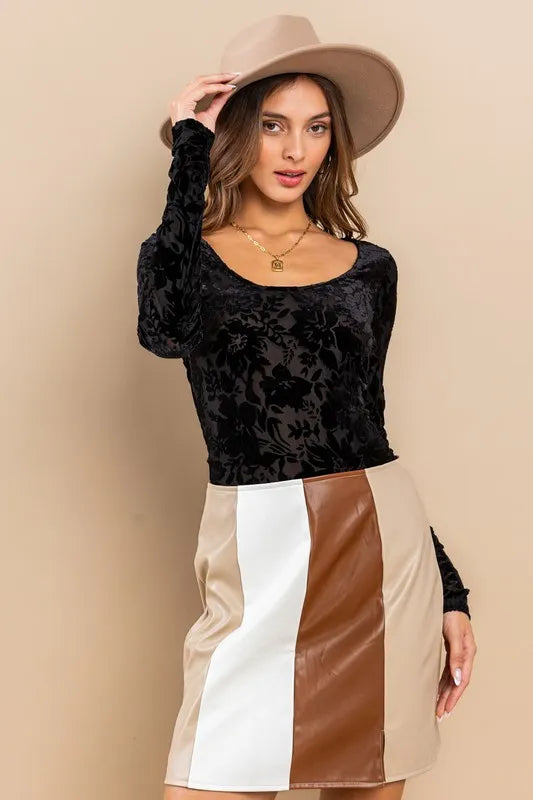 Elegant Velvet Floral Long-Sleeve Bodysuit by Ces Femme