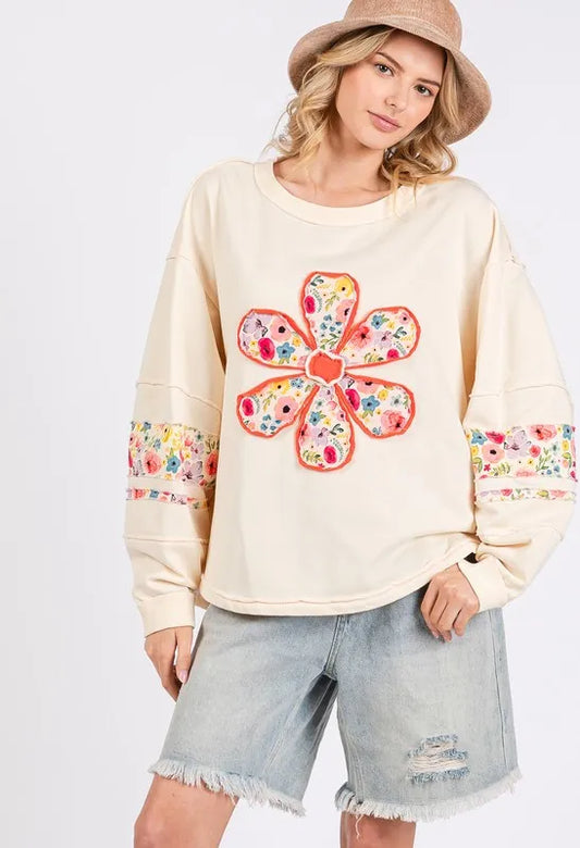SAGE + FIG Daisy Patch Applique Long Sleeve Sweatshirt