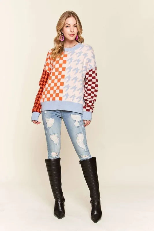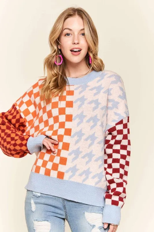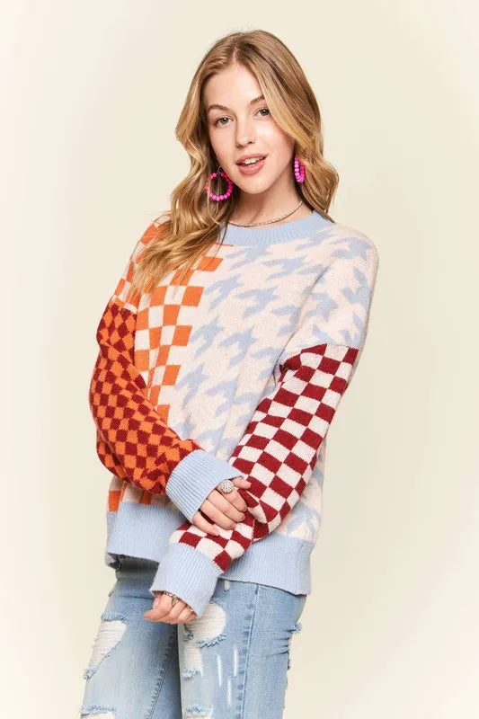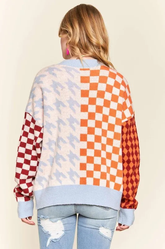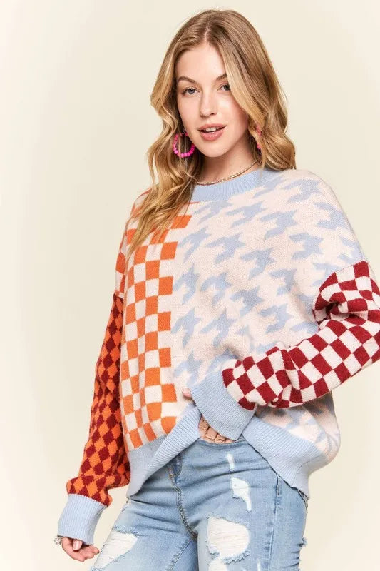 ADORA Classic Checker & Houndstooth Patterned Sweater