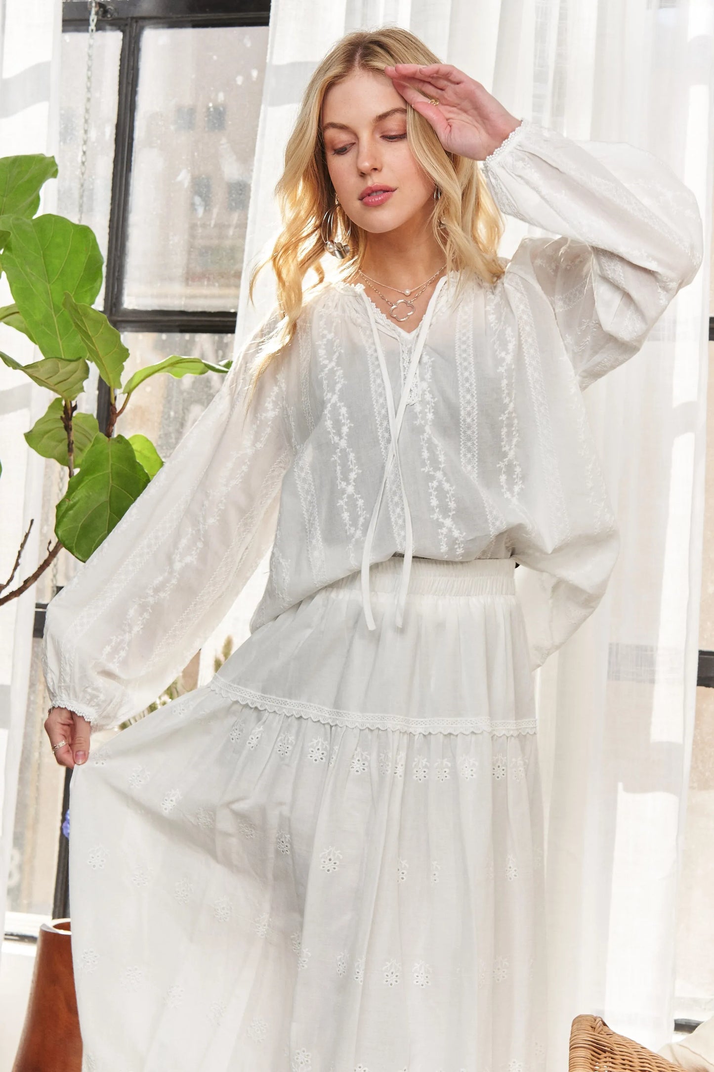 ADORA Bohemian Style 100% Cotton Peasant Top