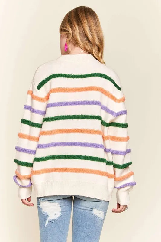 ADORA Cozy Fluffy Striped Sweater Top - Perfect for Casual Wear