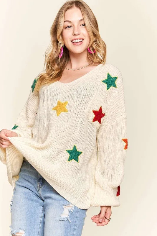 Vibrant and Trendy ADORA Star Sweater Top in Multiple Colors