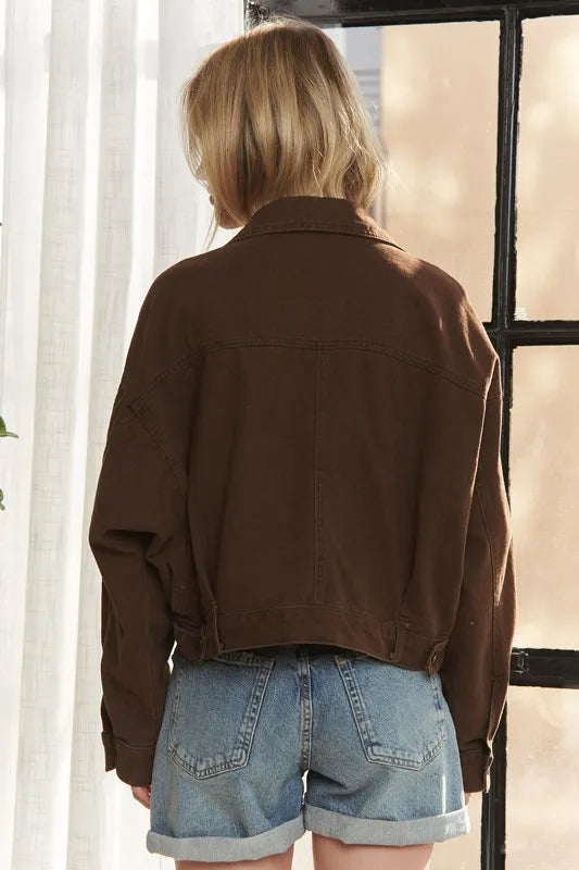 This cropped brown jacket features stylish pockets for a versatile and on-trend look. The cropped silhouette adds a modern touch to the classic jacket design, while the pockets provide added functionality. Perfect for layering over various outfits, this brown jacket with pockets is a chic and practical addition to your wardrobe for a fashionable and effortless ensemble.