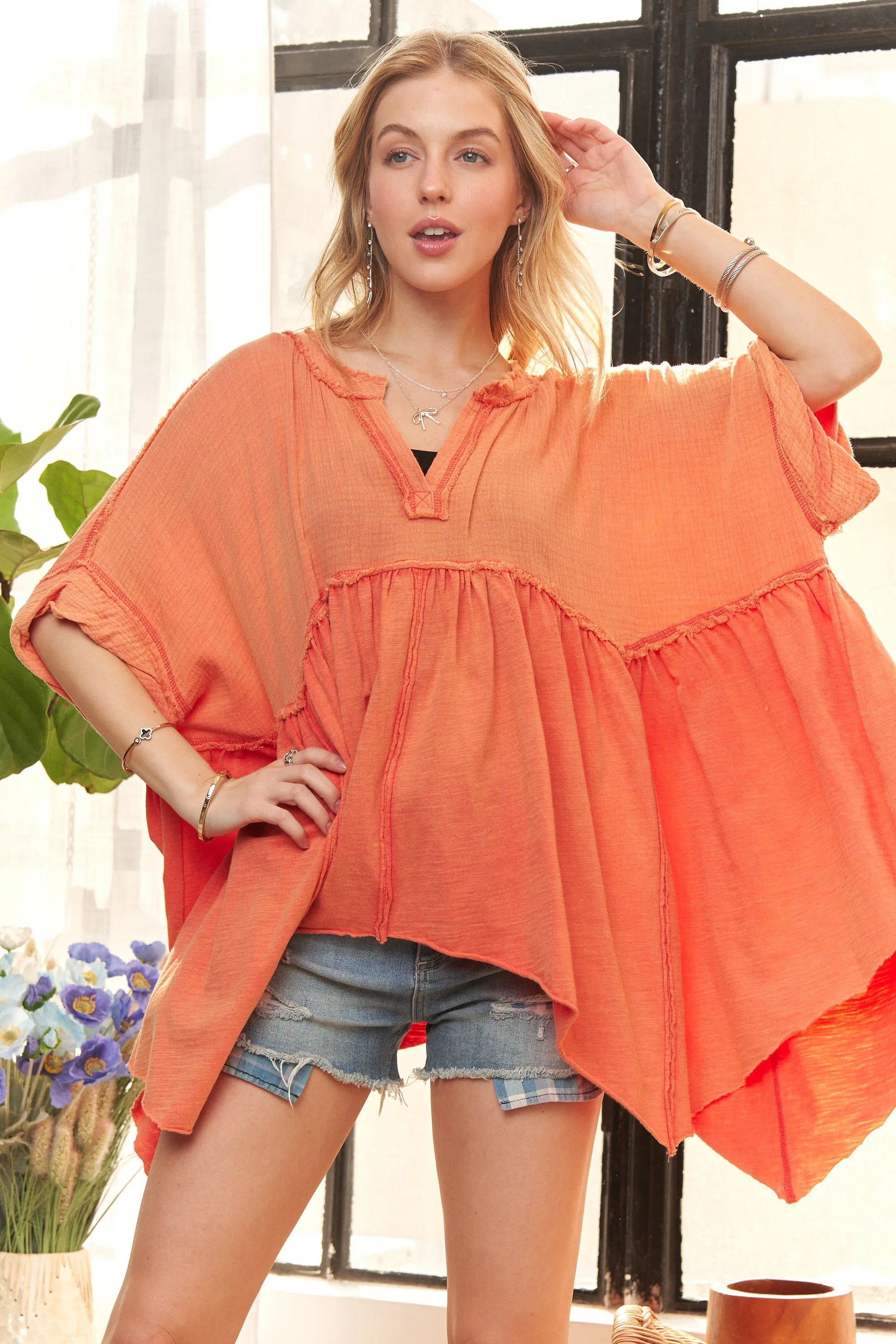 Bohemian-Inspired ADORA Oversized Flare Top in Mineral Wash