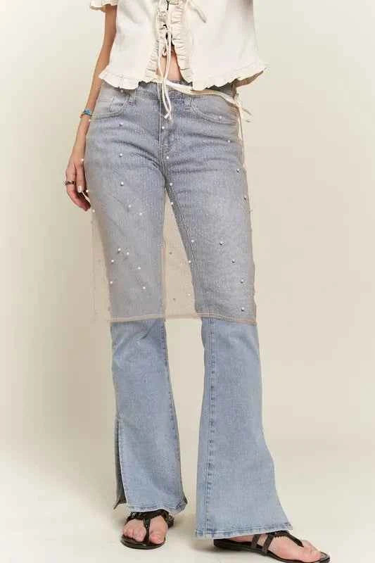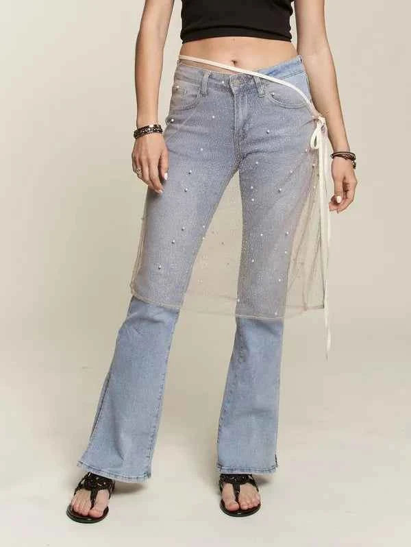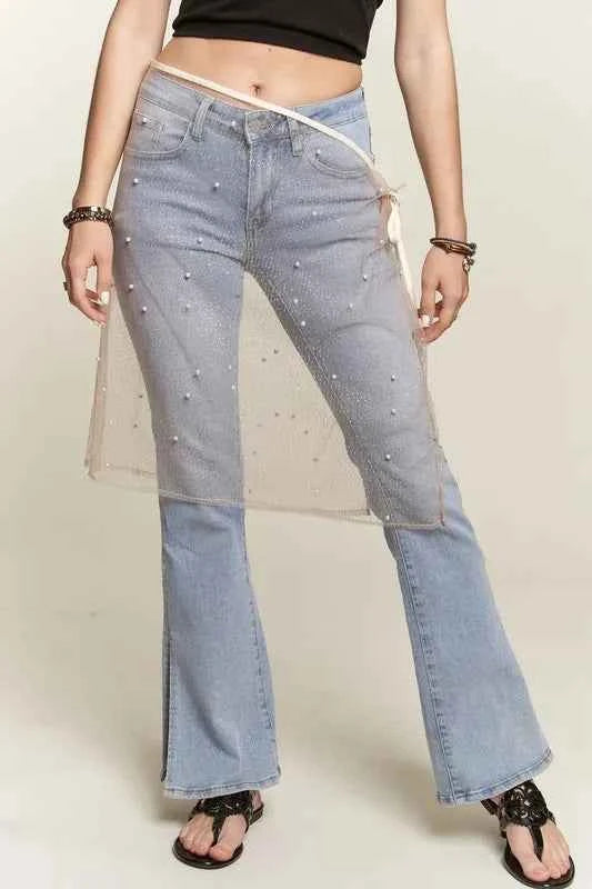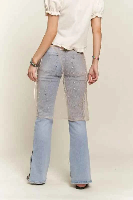 Make a statement with this pearl accent glitter mesh layered skirt. The pearl detailing adds a touch of elegance and femininity to the skirt. The glitter mesh fabric gives it a glamorous and eye-catching look, perfect for special occasions or nights out. Pair with a fitted top and heels for a sophisticated and fashionable ensemble. Stand out in style with this stunning and unique layered skirt.