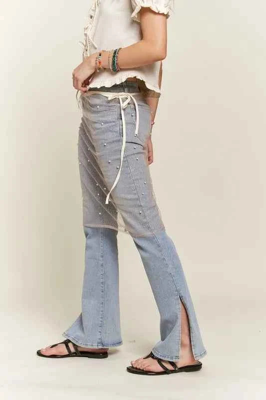 ADORA Pearl Accent Glitter Mesh Layered Cover-Up Skirt
