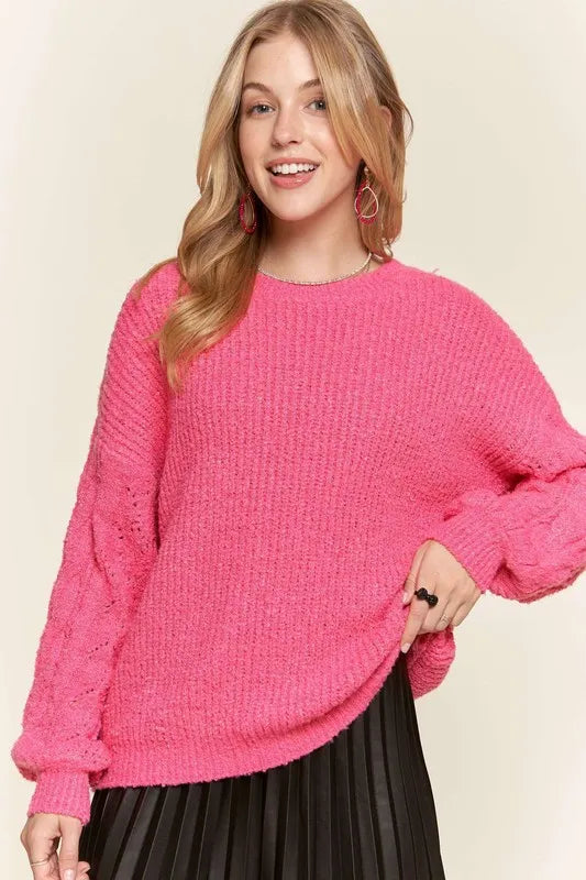 Chic ADORA Puff Sleeve Knit Sweater - Perfect for Cooler Weather
