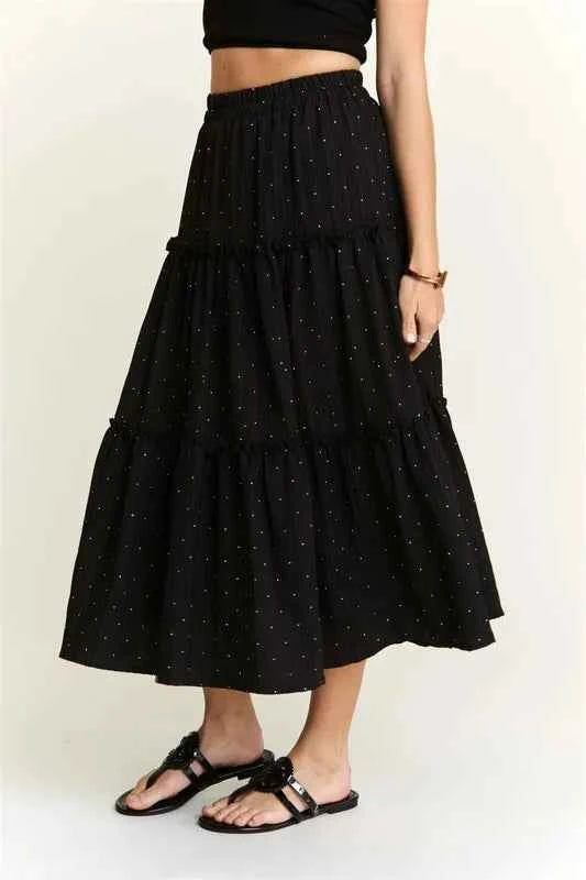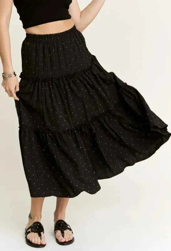 The Rhinestone Accent Tiered Skirt is a glamorous and sophisticated addition to your wardrobe. The rhinestone accents add a touch of sparkle and luxury to the skirt. The tiered design creates a beautiful and flattering silhouette. Perfect for adding a touch of elegance to any outfit, this skirt is a versatile piece for various occasions. Pair it with a simple top for a stylish and chic look!