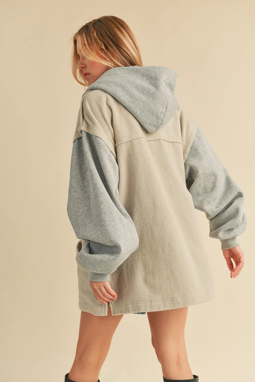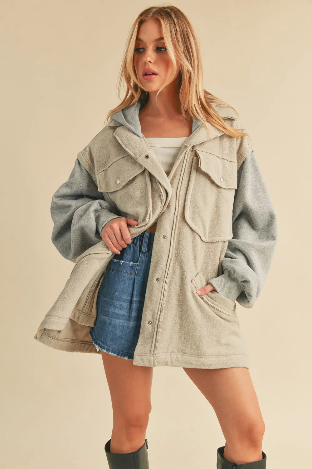 Aemi+Co Stylish Contrast Hooded Jacket with Snap Buttons