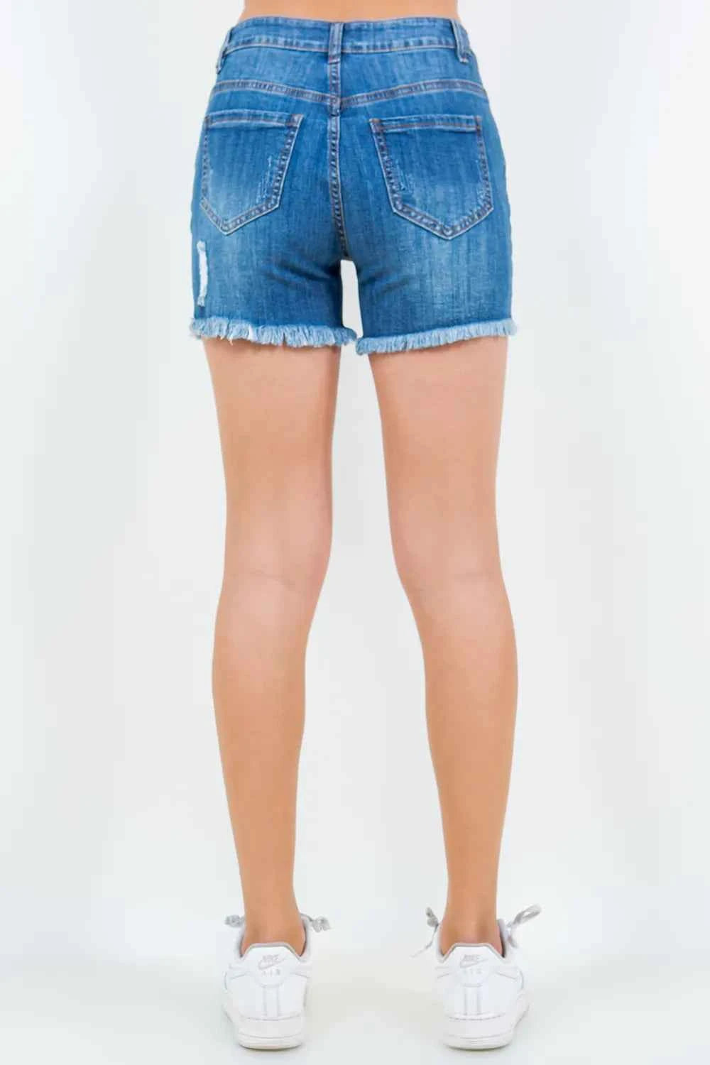 American Bazi High Waist Distressed Frayed Denim Shorts