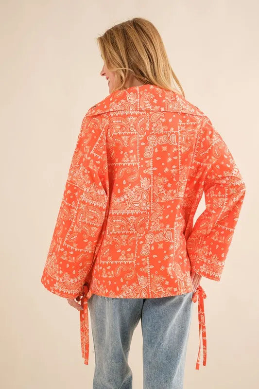 Chic Bandana Pattern Lace-Up Windbreaker - Sporty & Trendy