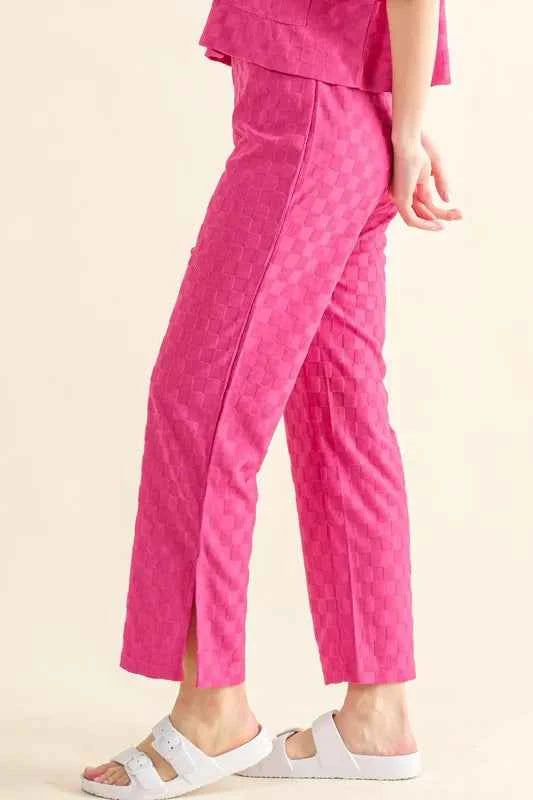 And The Why Brushed Texture Checker Board Pattern Casual Pants