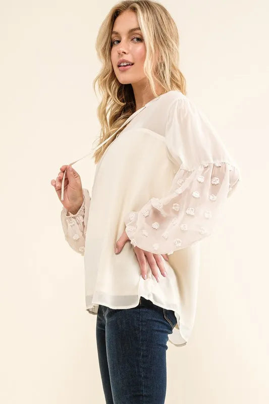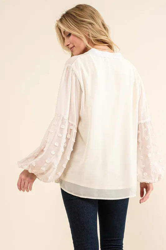 Chic Polka Dot Balloon Sleeve Blouse in Woven Fabric