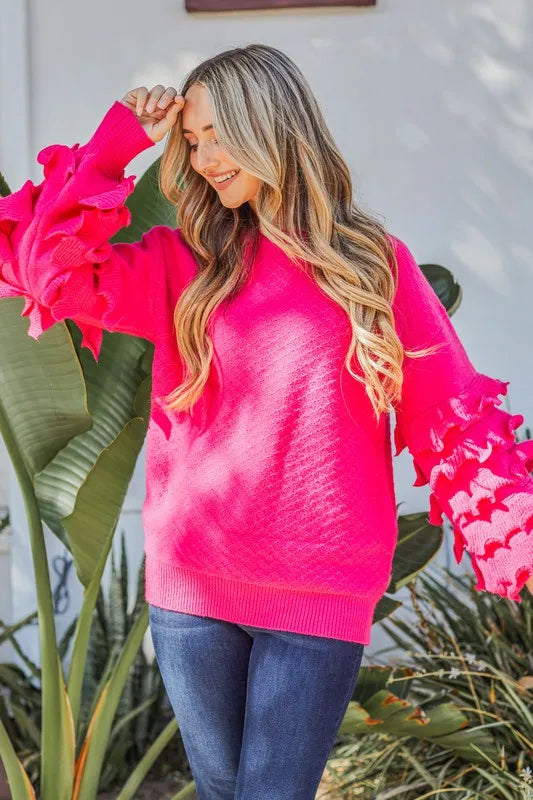 Cozy Puffy Ruffled Sleeve Sweater for Winter Chic
