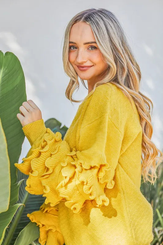 Ruffled Sleeve Cozy Sweater - Chic and Stylish Winter Wardrobe Essential