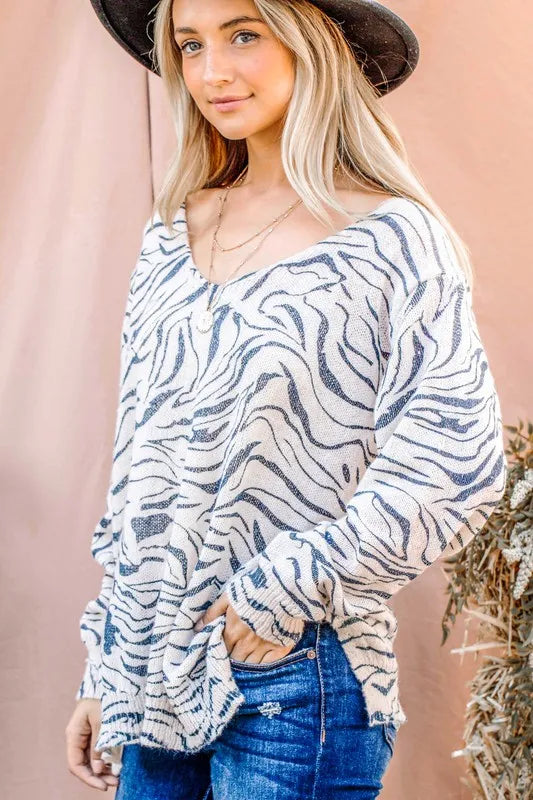 Bold Zebra Print Knit Pullover Top for Trendy Fashion Statements