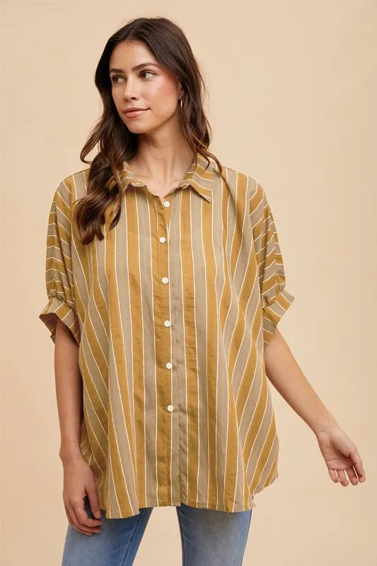 Annie Wear Striped Oversized Shirt with Drop Shoulders