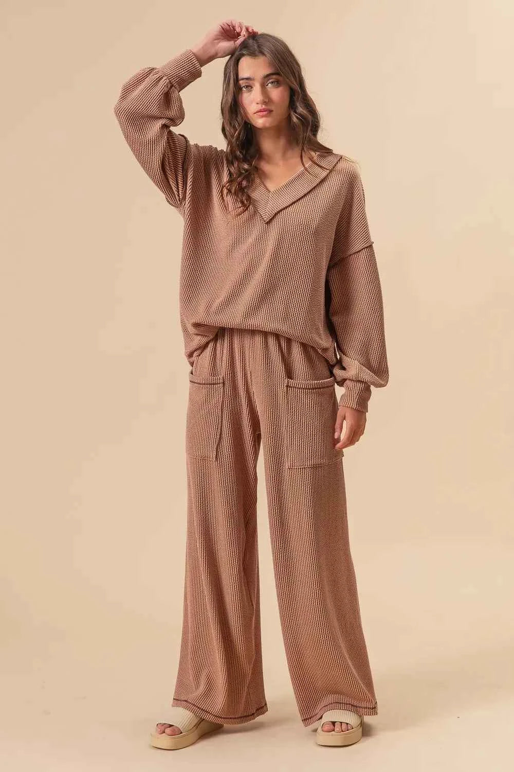 BiBi 2tone Cord Rib Waist Band Side Pocket Pants