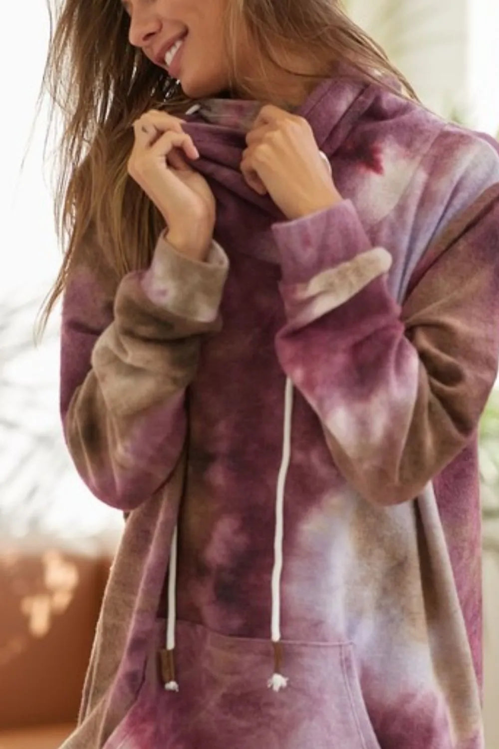 Cozy Brushed Tie Dye Turtleneck Sweatshirt with Unique Overlap Design