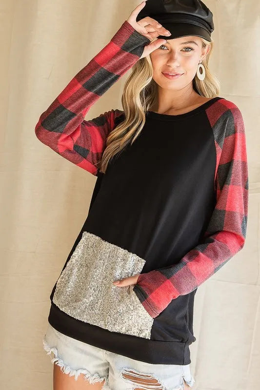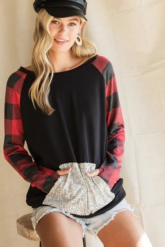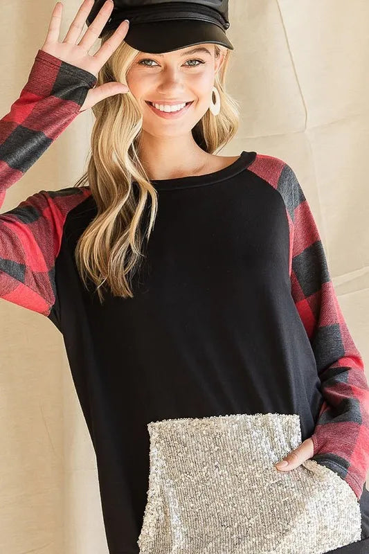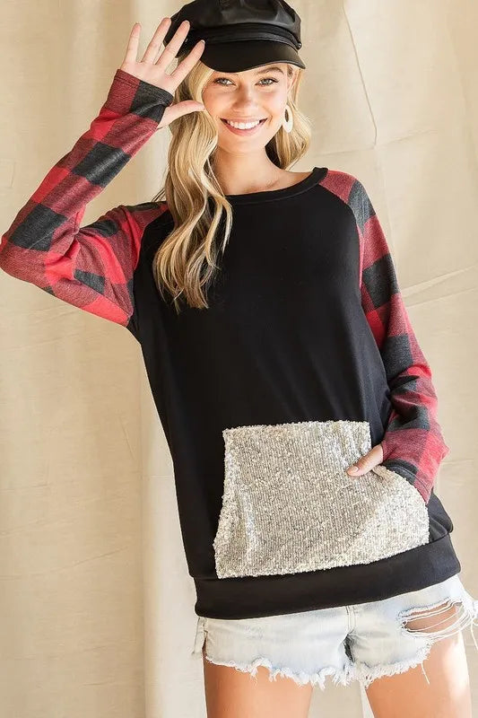 BiBi Stylish French Terry Top with Sparkling Sequin Pocket
