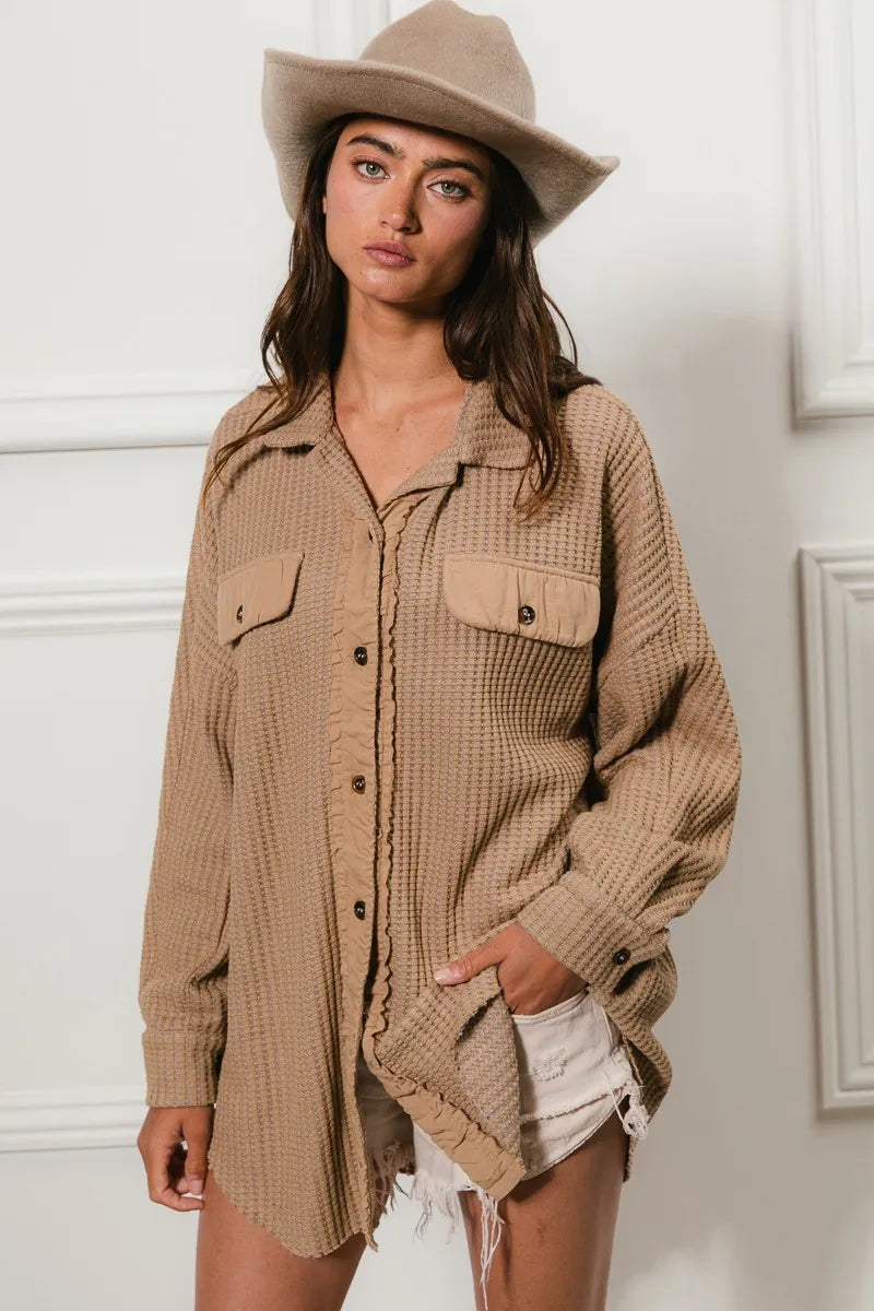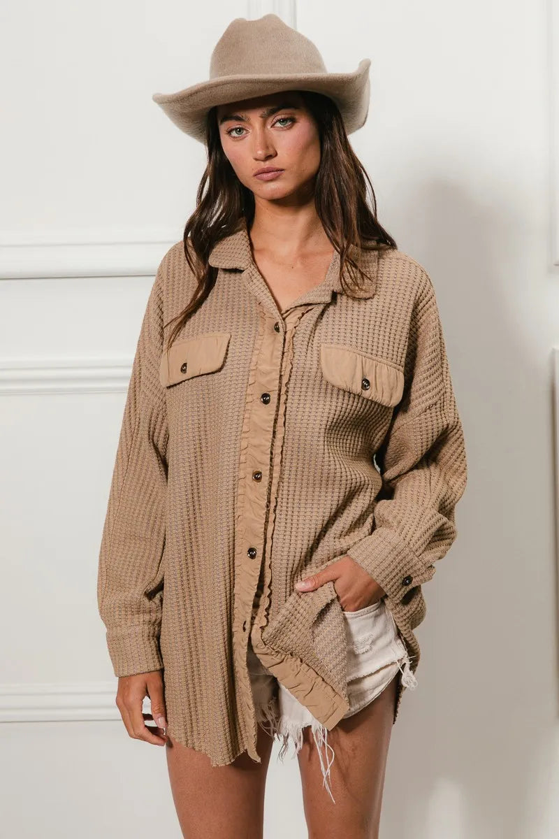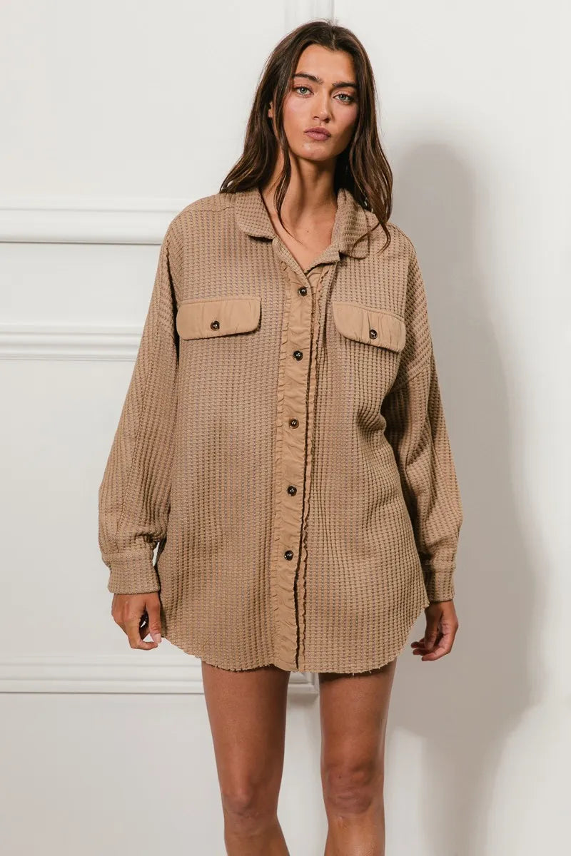 Versatile BiBi Waffle Weave Oversized Shacket