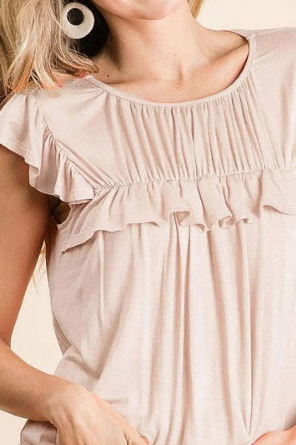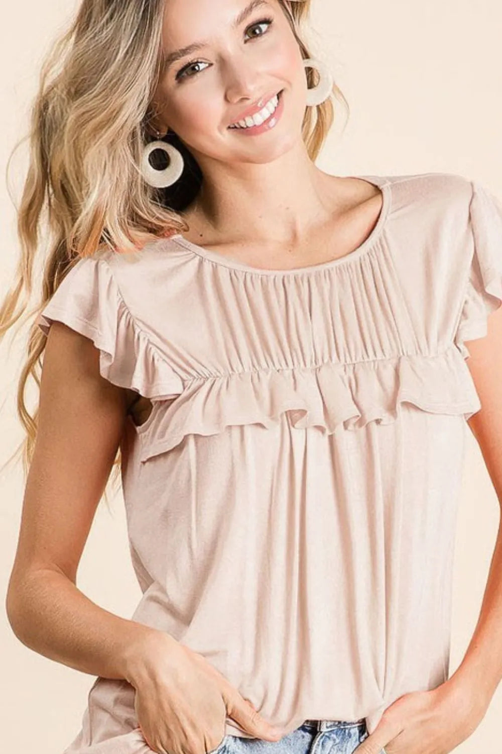 Chic BiBi Jersey Knit Top with Gathered Detail & Ruffles