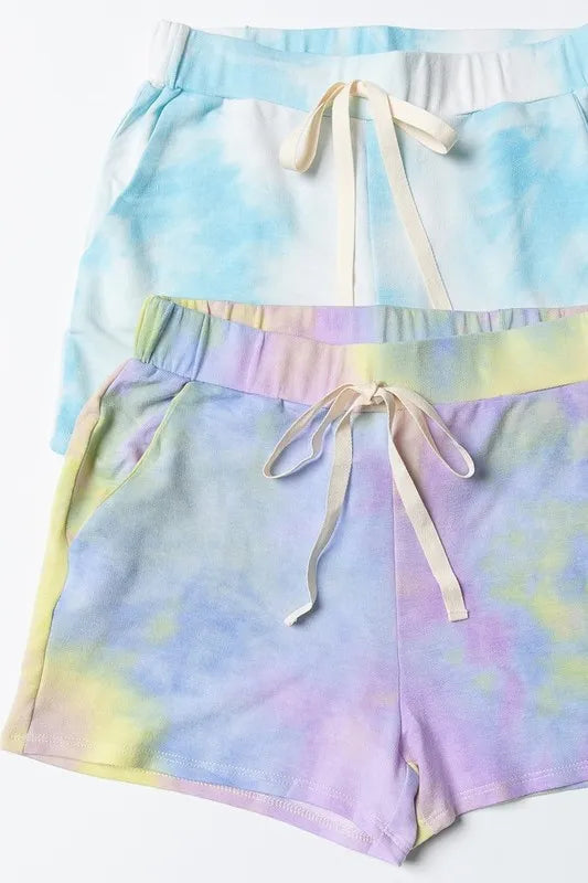 BiBi Tie Dye French Terry Casual Shorts with Twill Tape