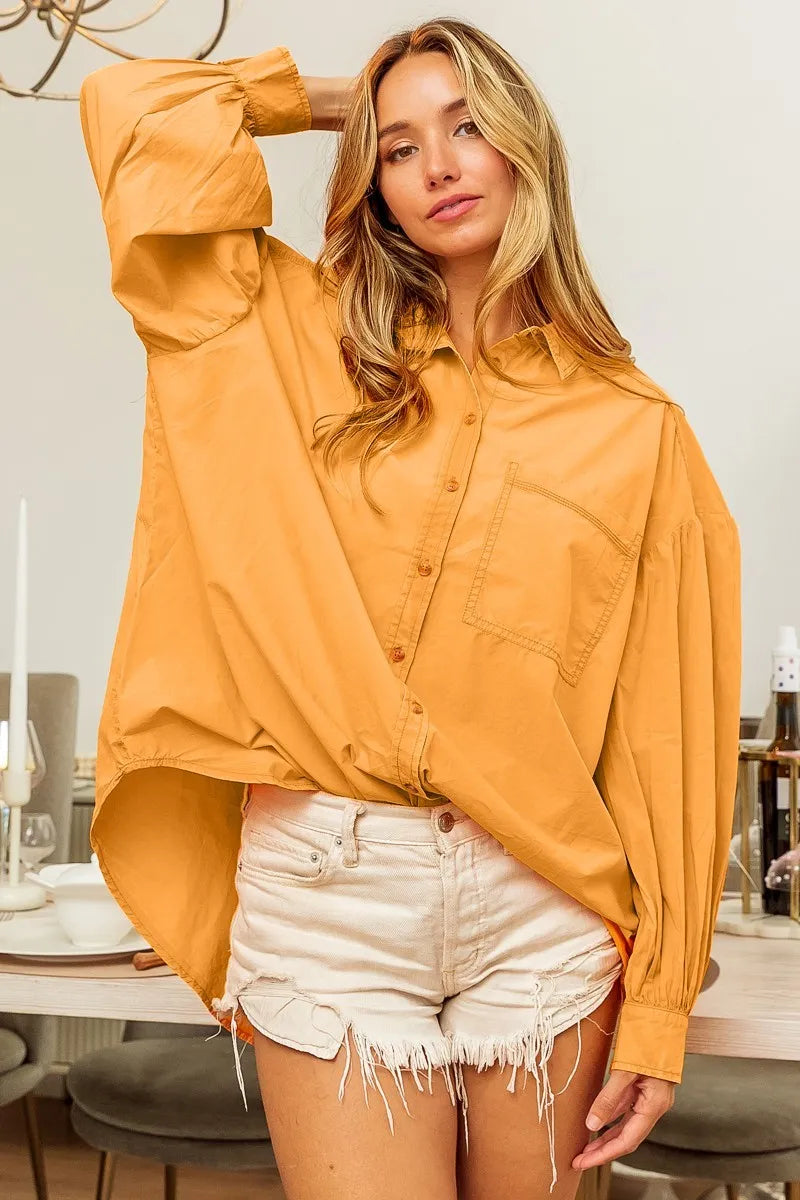 BiBi Oversized Vintage Washed Shirt with Gathered Sleeves