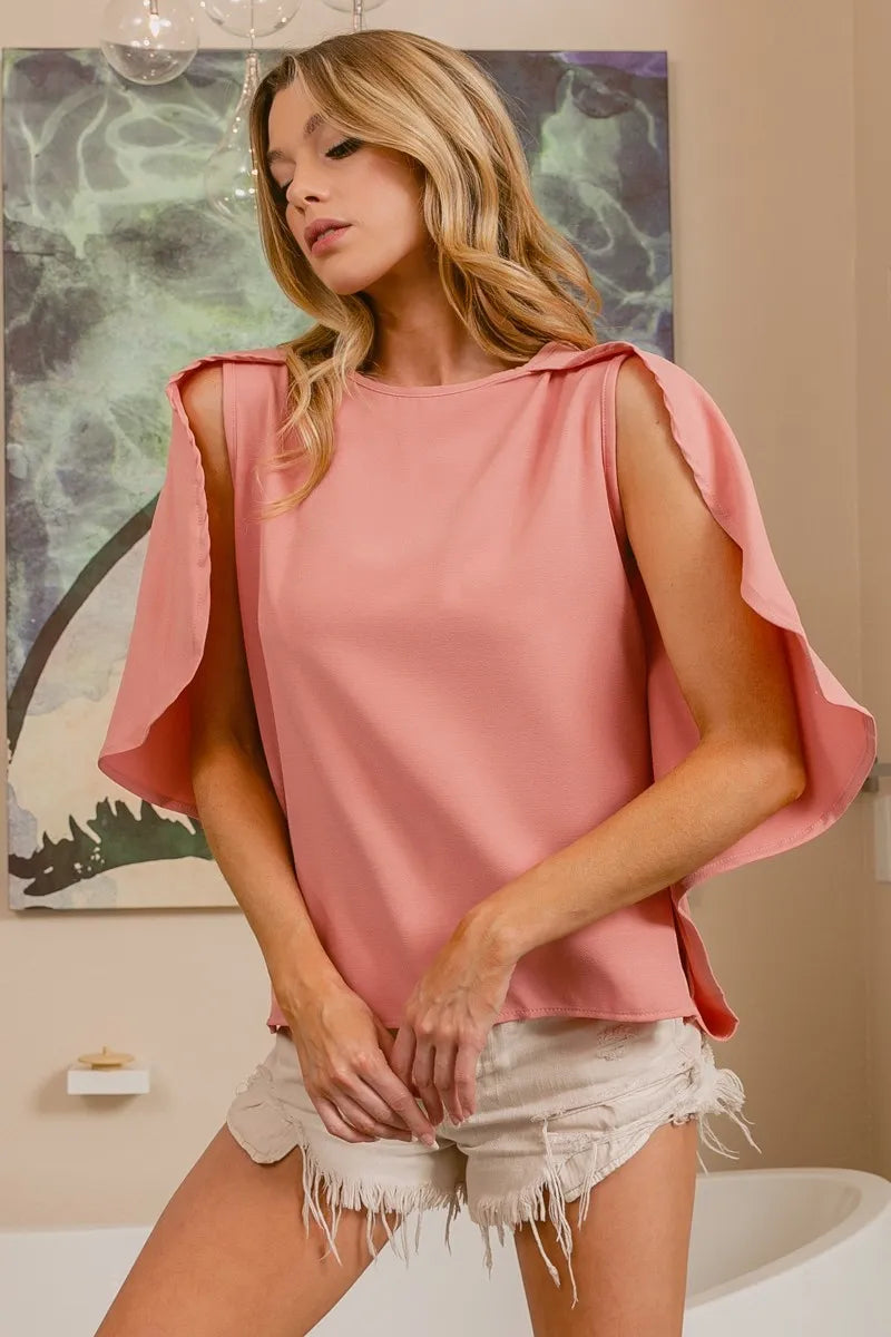 Chic BiBi Woven Top with Stylish Fold-Over Back