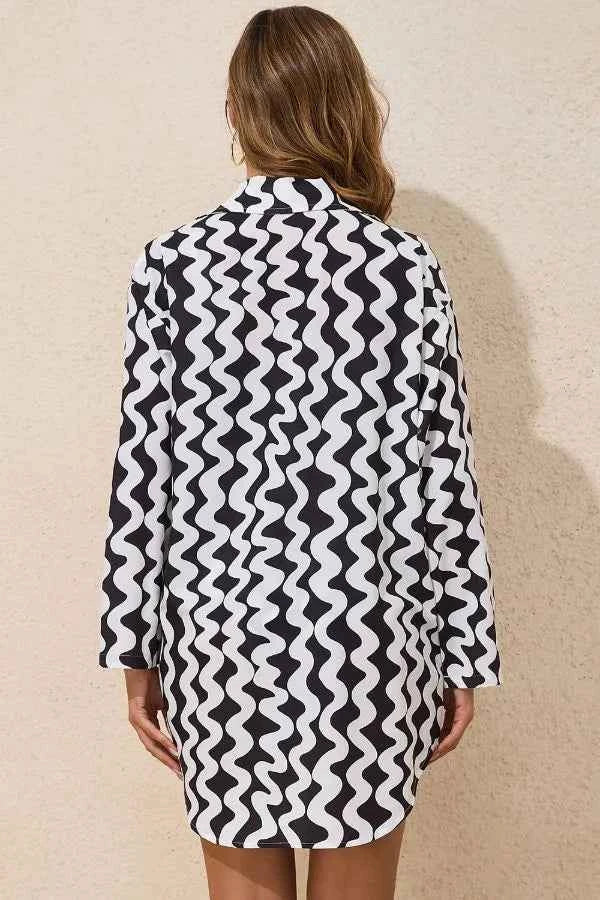 Button Down Contrast Striped Cover-Up