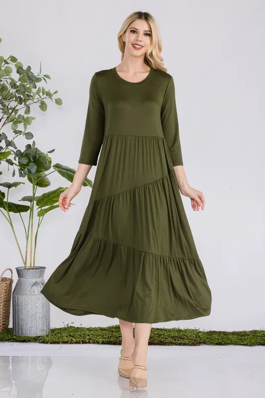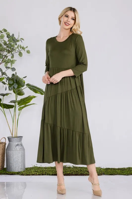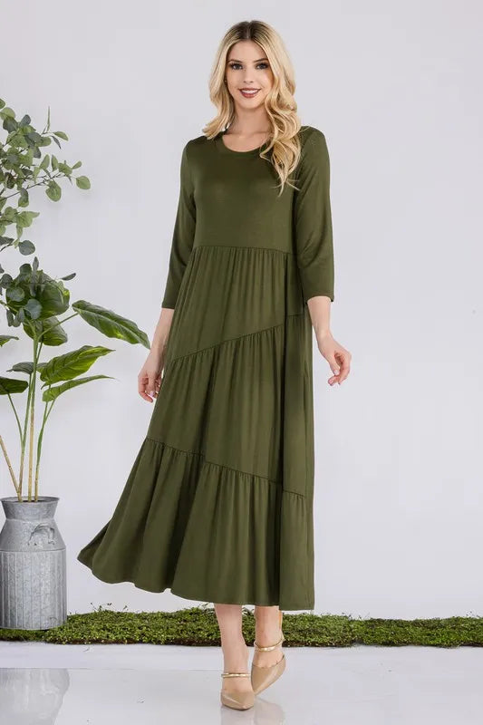 Plus-Size Celeste Full Midi-Dress with Asymmetric Tiered Design