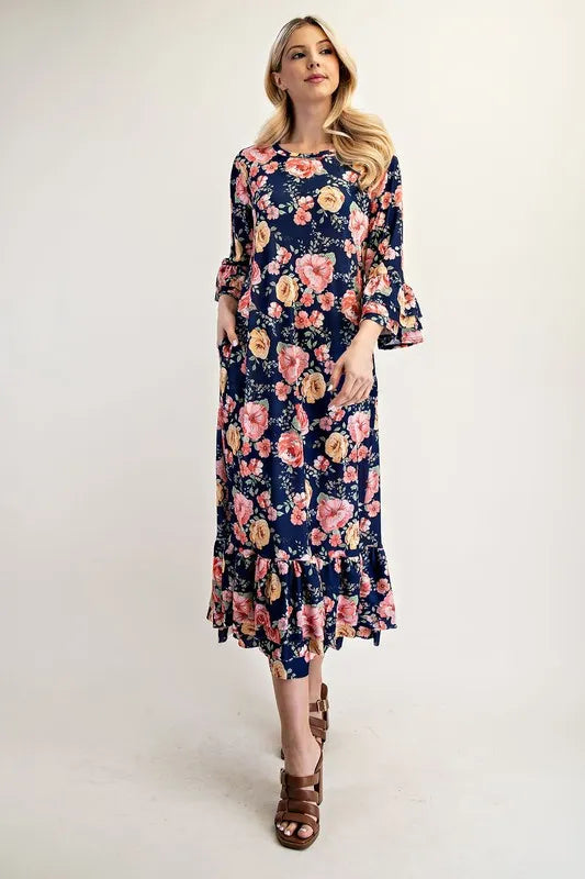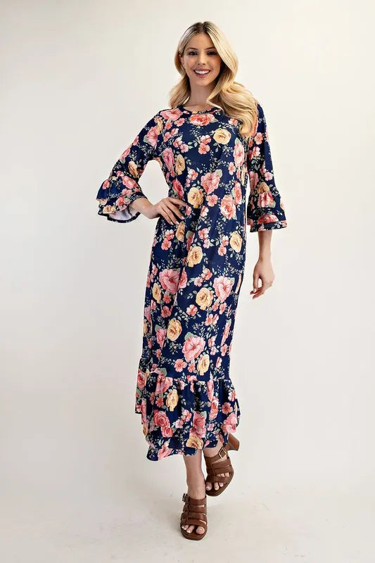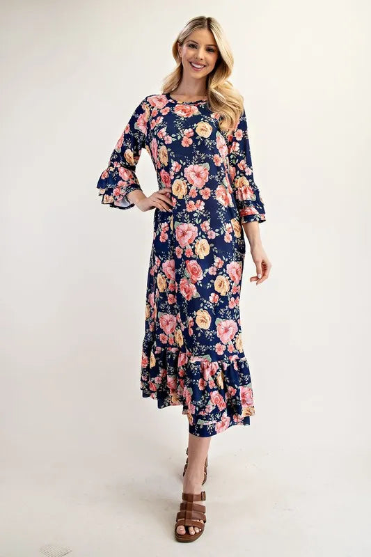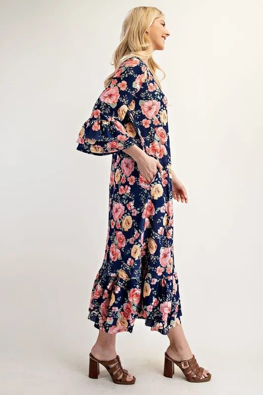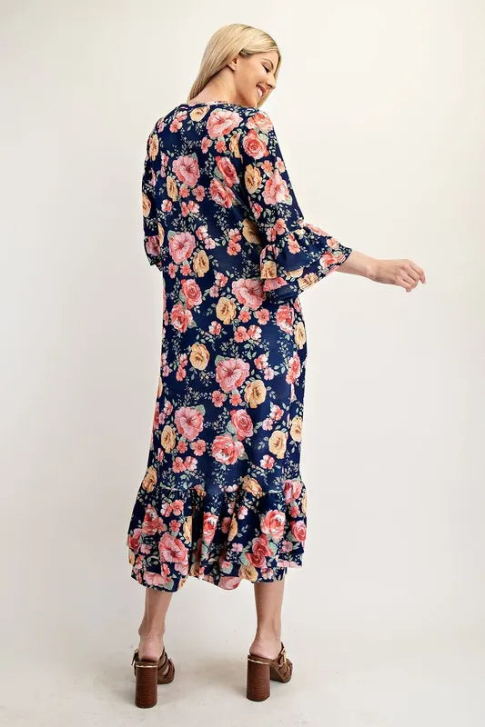 Romantic Floral Ruffle Trim Dress - Celeste Full Size Plus