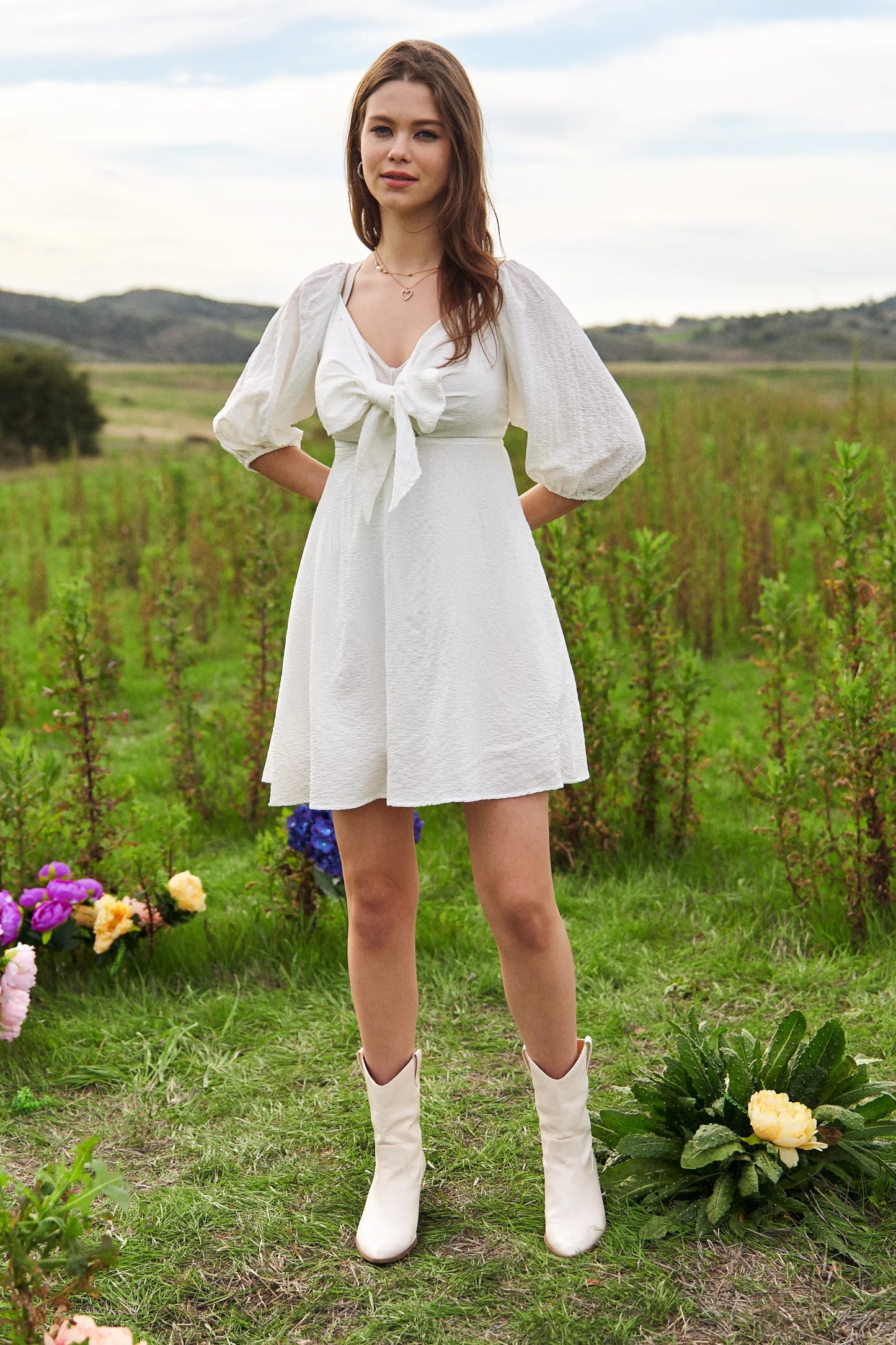 Romantic Davi & Dani Mini Dress with Puff Sleeves and Open Back
