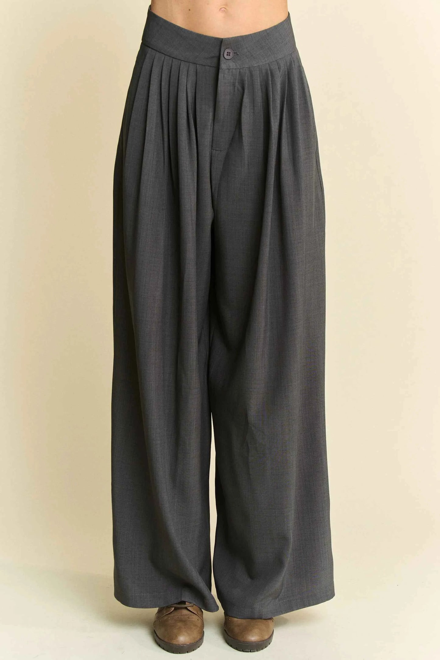 Davi & Dani Solid Back Pocket Shirring Detail Wide Leg Pants