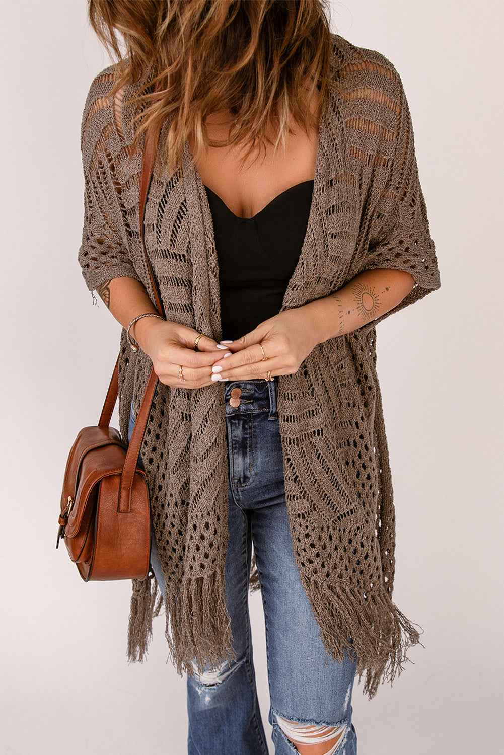 Fringe Hem Slit Open Front Cardigan