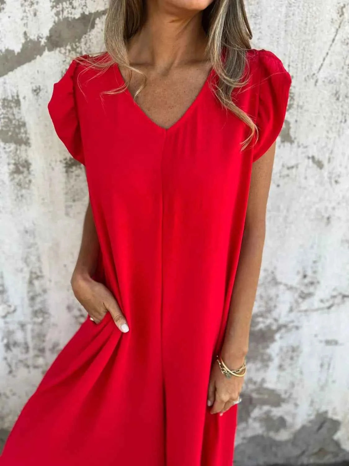Full Size V-Neck Cap Sleeve Wide Leg Jumpsuit Plus Size