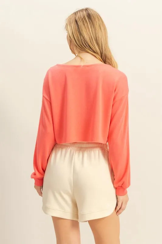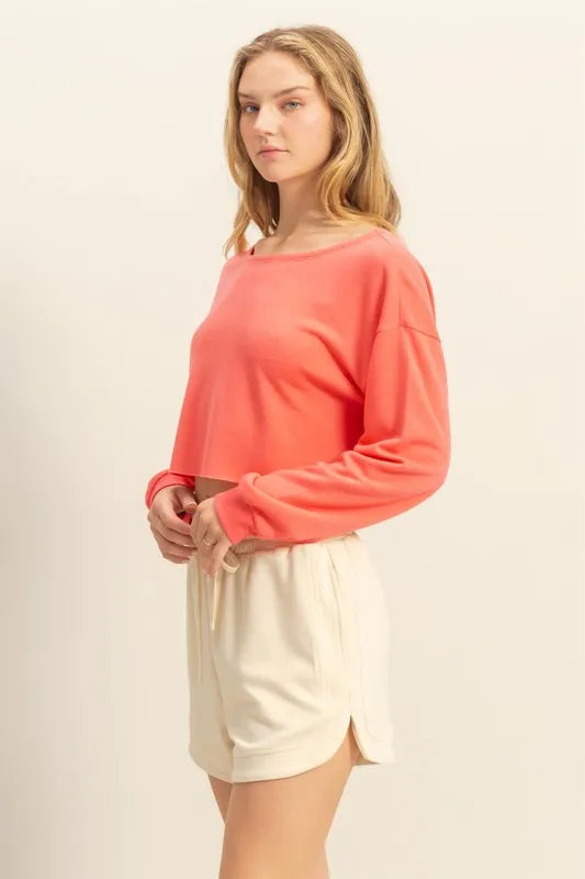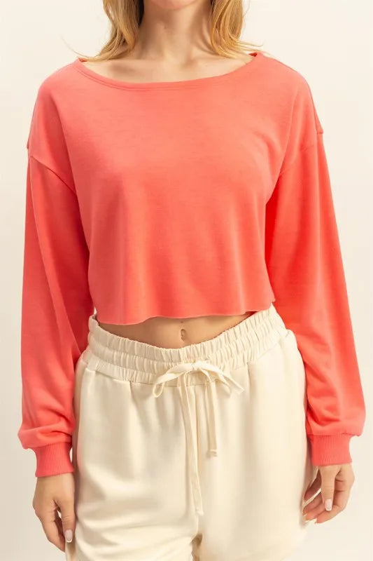Chic HYFVE Long-Sleeve Cropped Top with Boat Neck Design