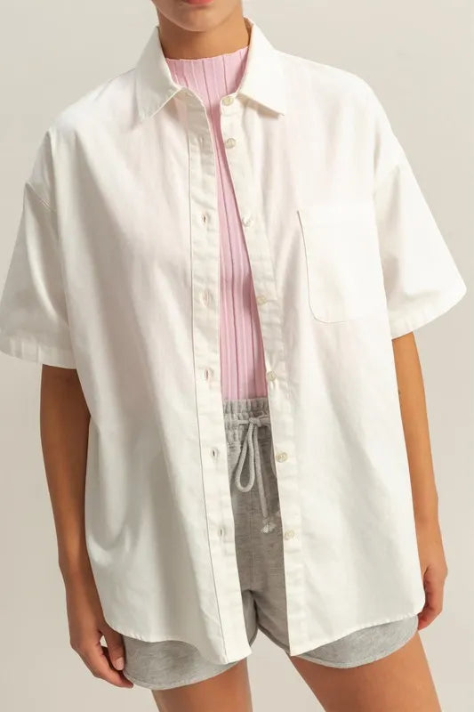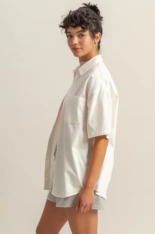 HYFVE Casual Oversized Short Sleeve Button Down Shirt