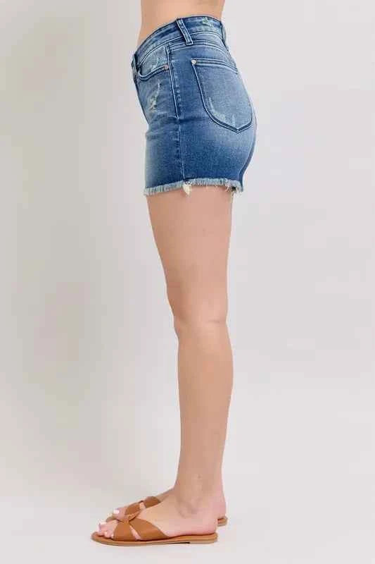 Judy Blue Full Size V-Front Denim Shorts with Shield Pockets Plus Size
