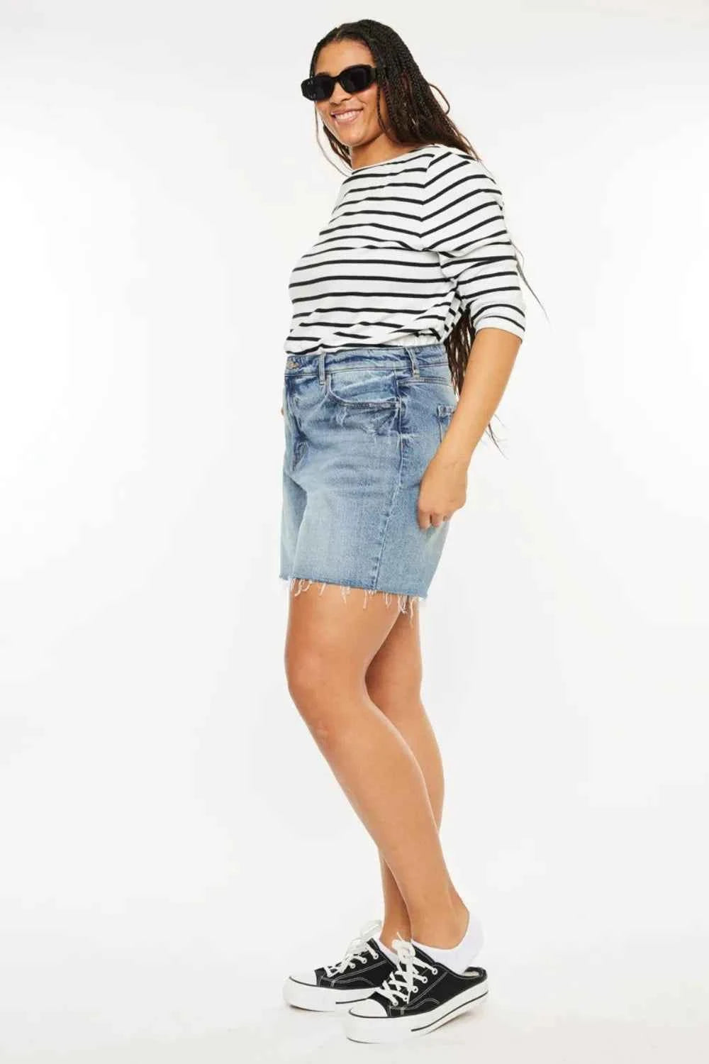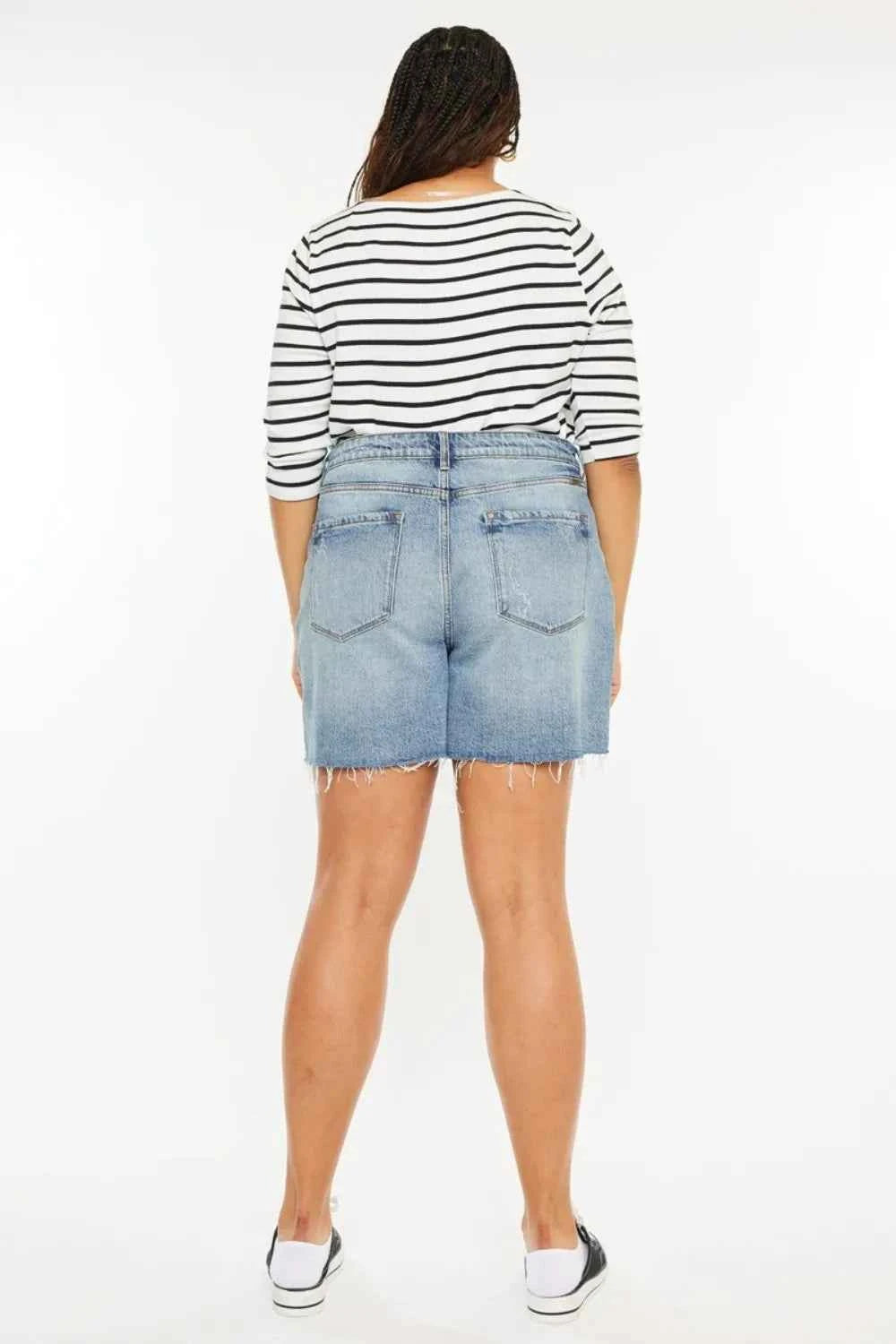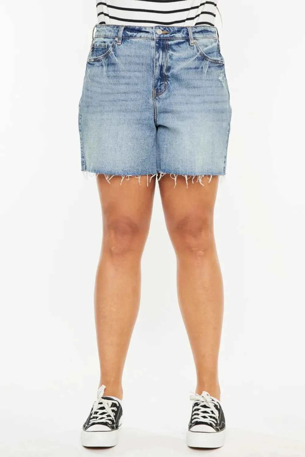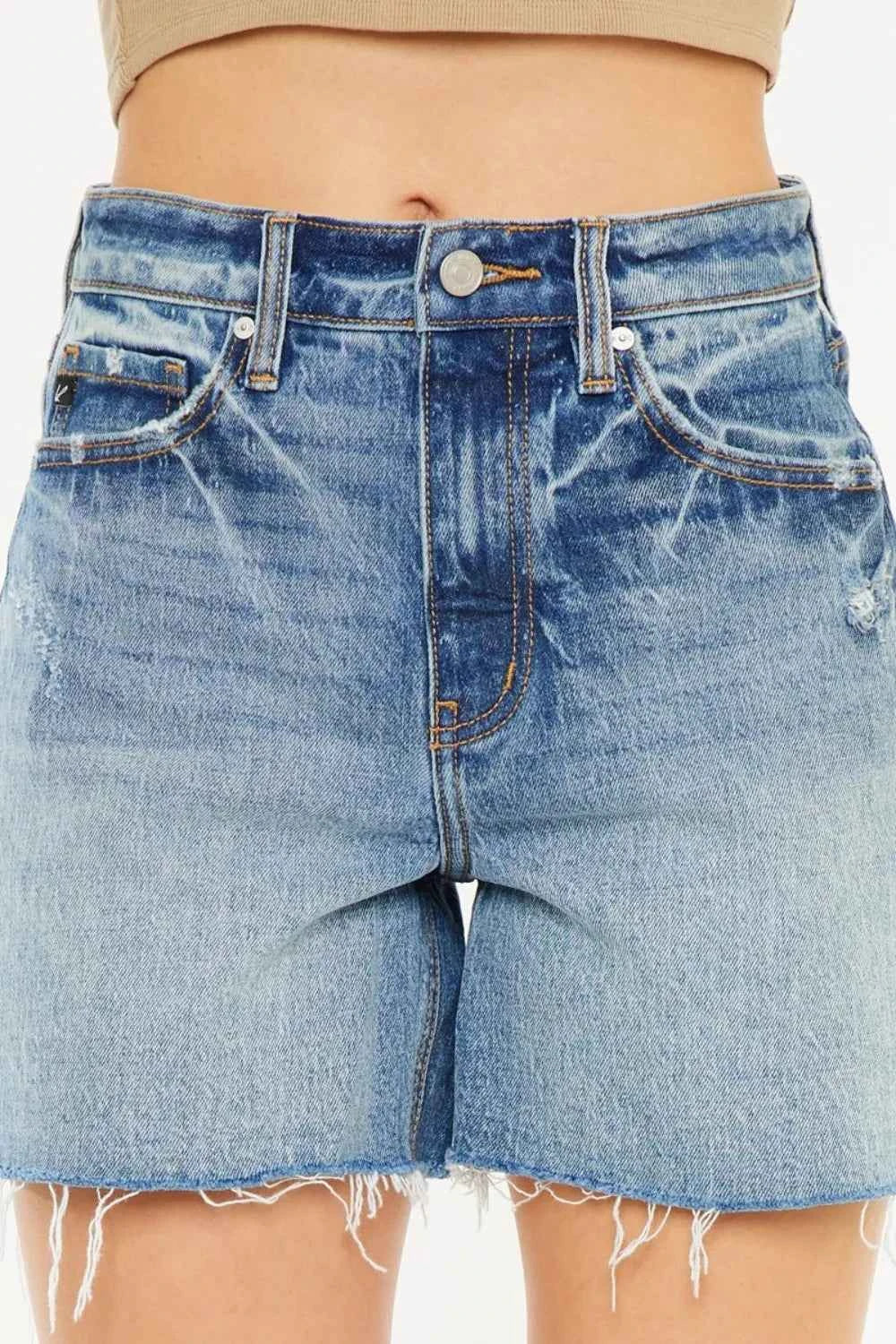 Kancan Full Size Raw Hem High Waist Denim Shorts