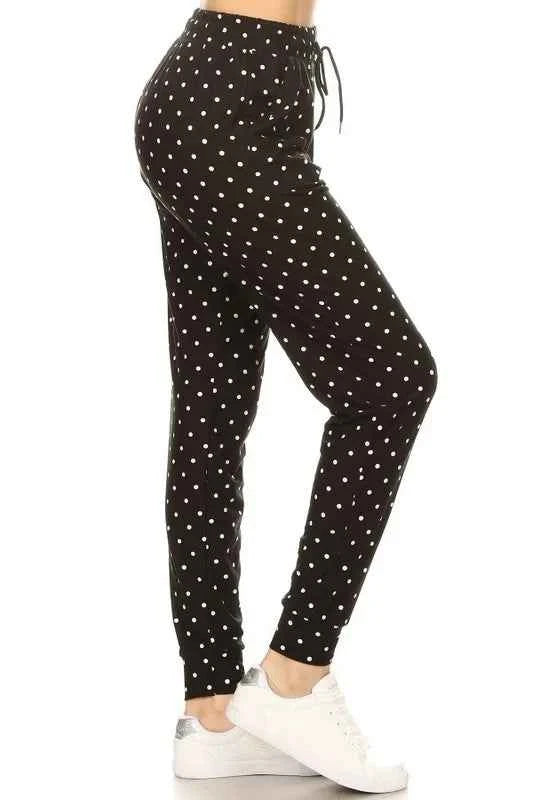 Leggings Depot Full Size Buttery Soft Polka Dot Joggers with Drawstring Plus Size