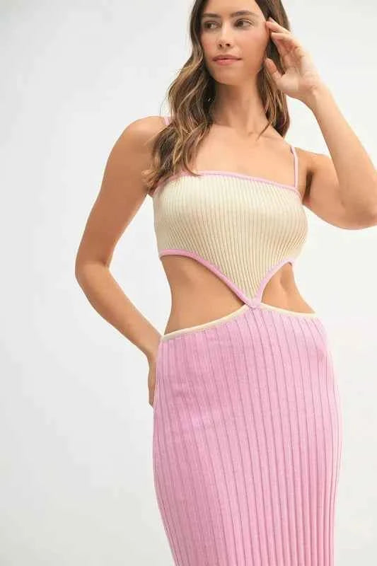 MABLE Ribbed Knit Color Block Cutout Midi Dress