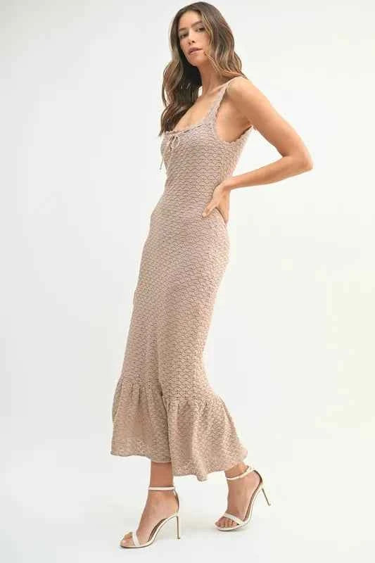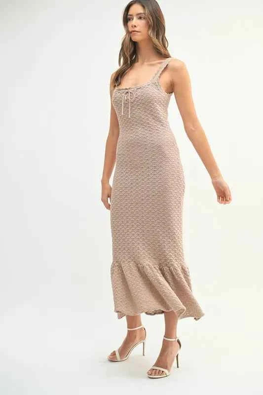 MABLE Ruffled Hem Sleeveless Crochet Knit Midi Dress