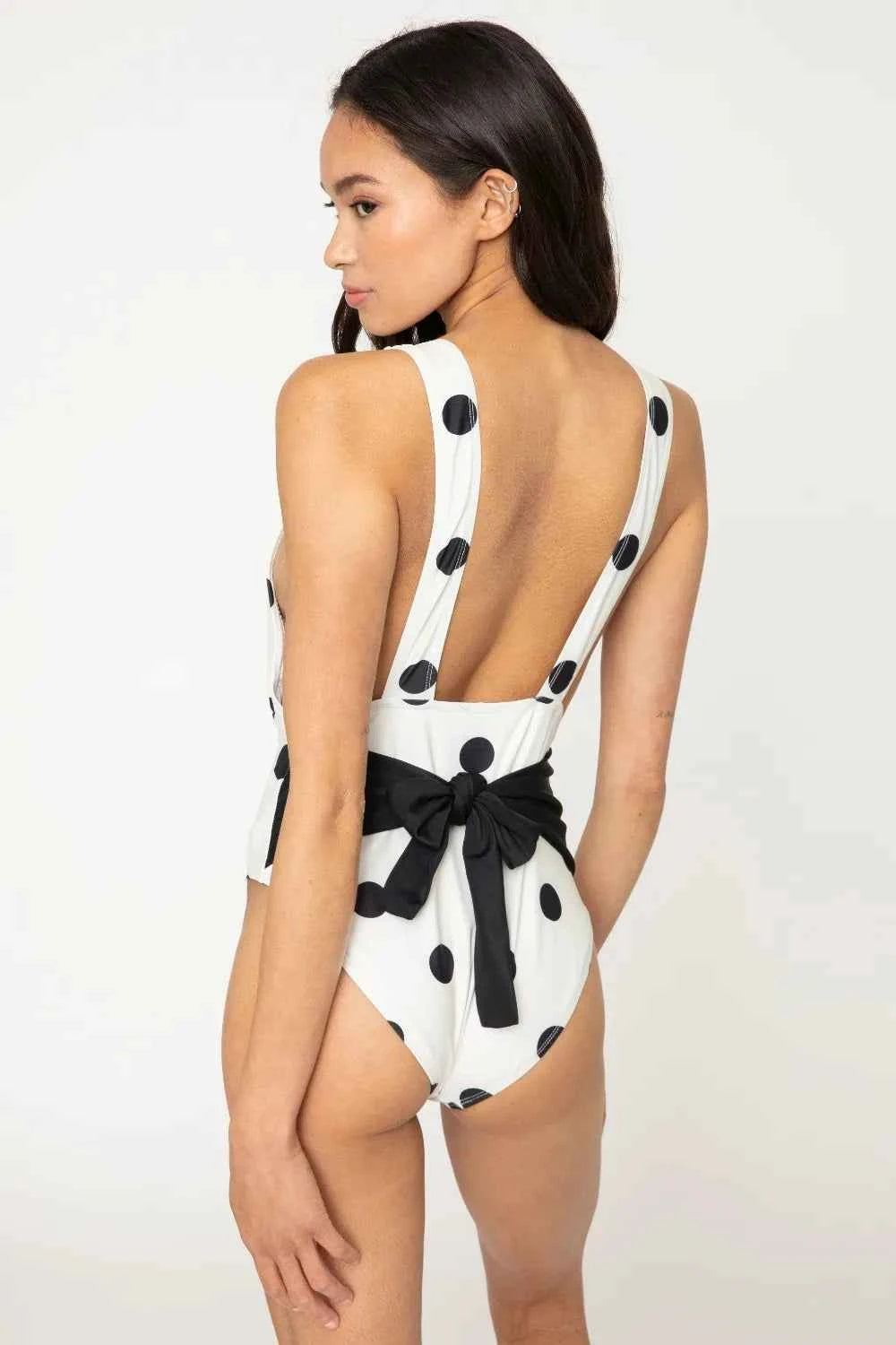 Marina West Swim Beachy Keen Polka Dot Tied Plunge One-Piece Swimsuit