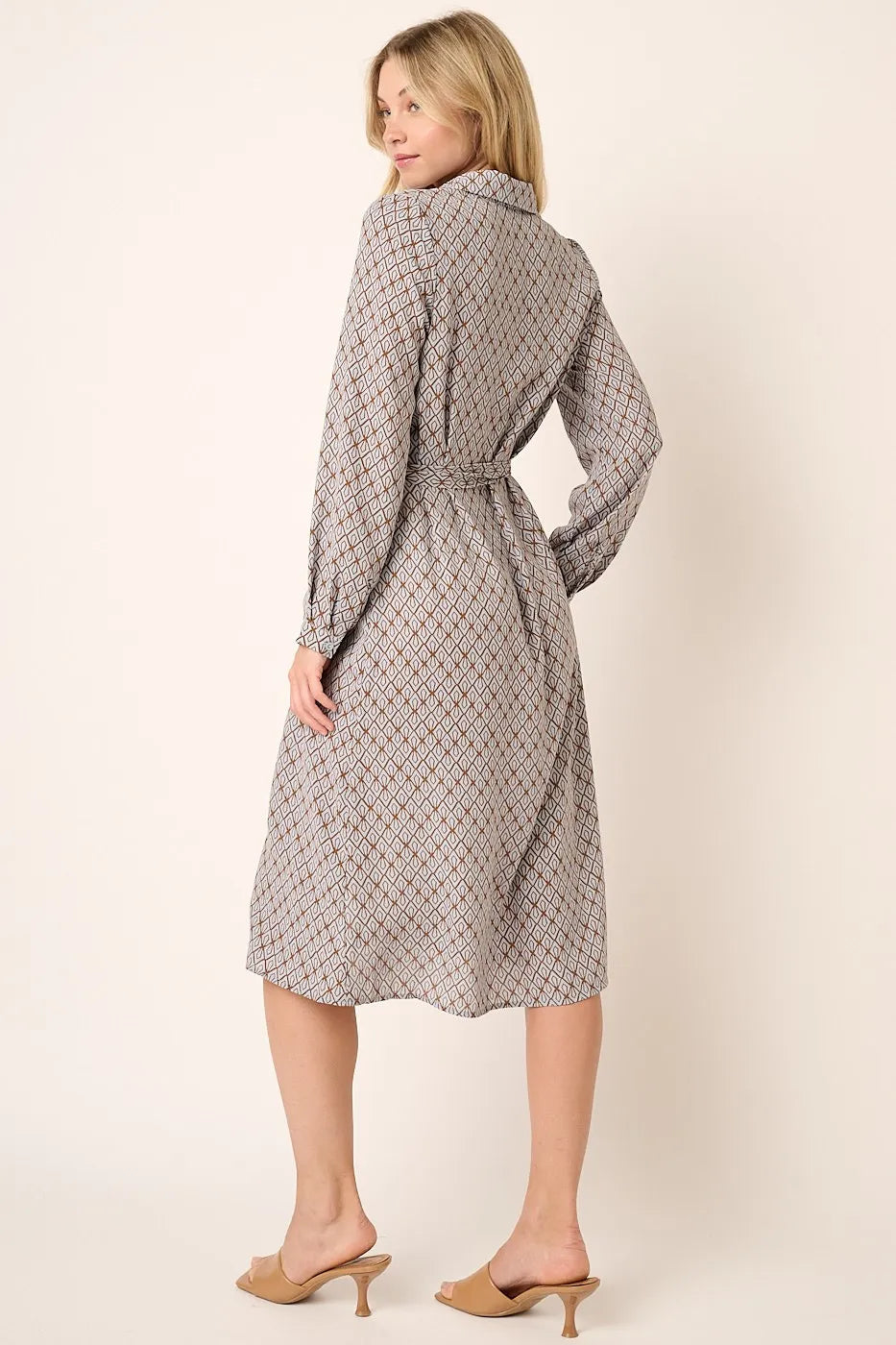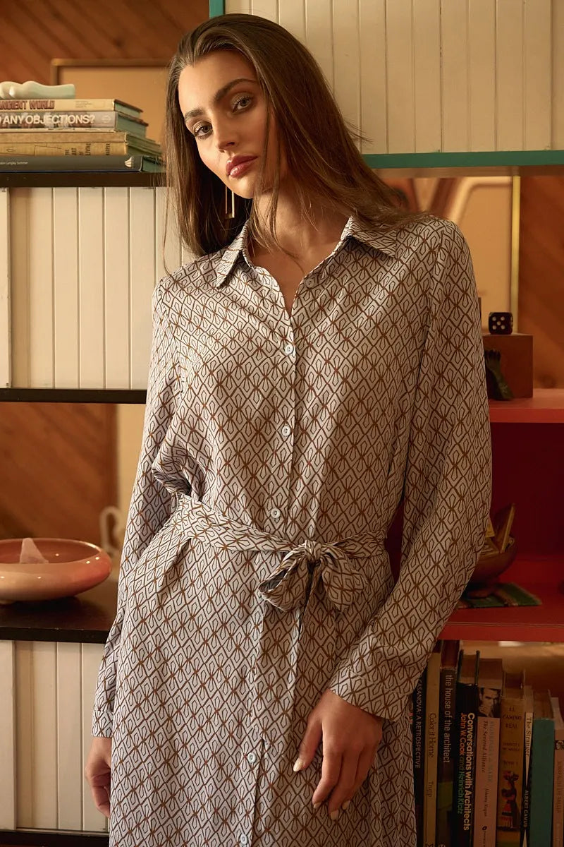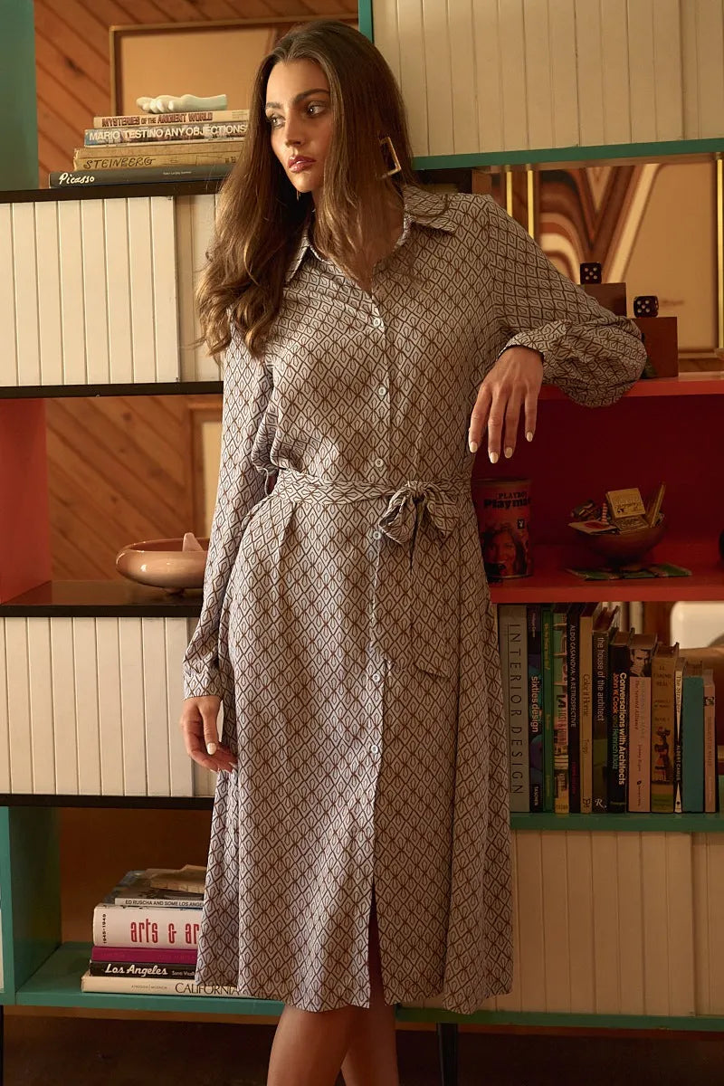 Mittoshop Abstract Print Waist Tie Midi Shirt Dress